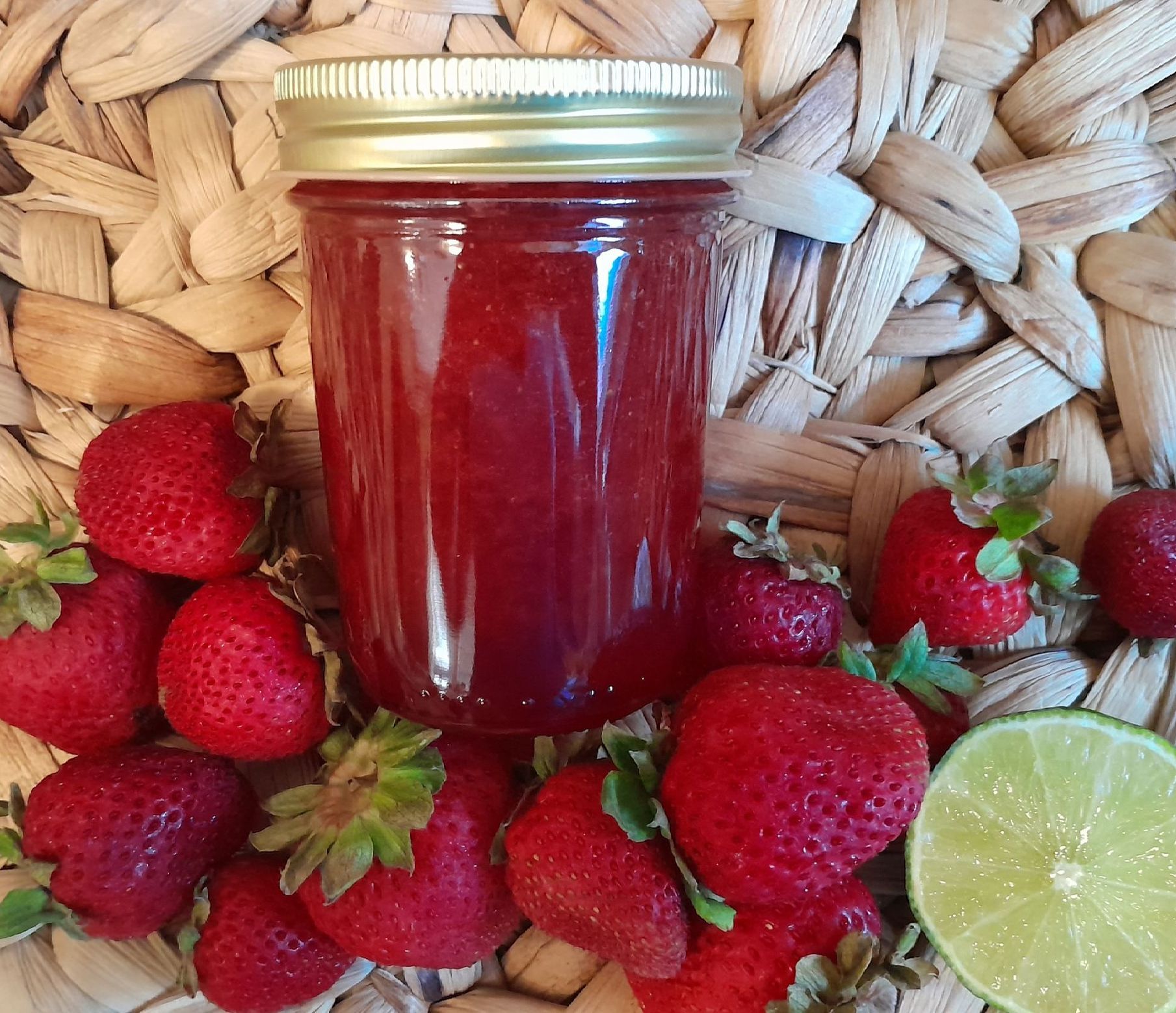 Strawberry Jam is an artisan jam made with ripe strawberries and fresh lime.
